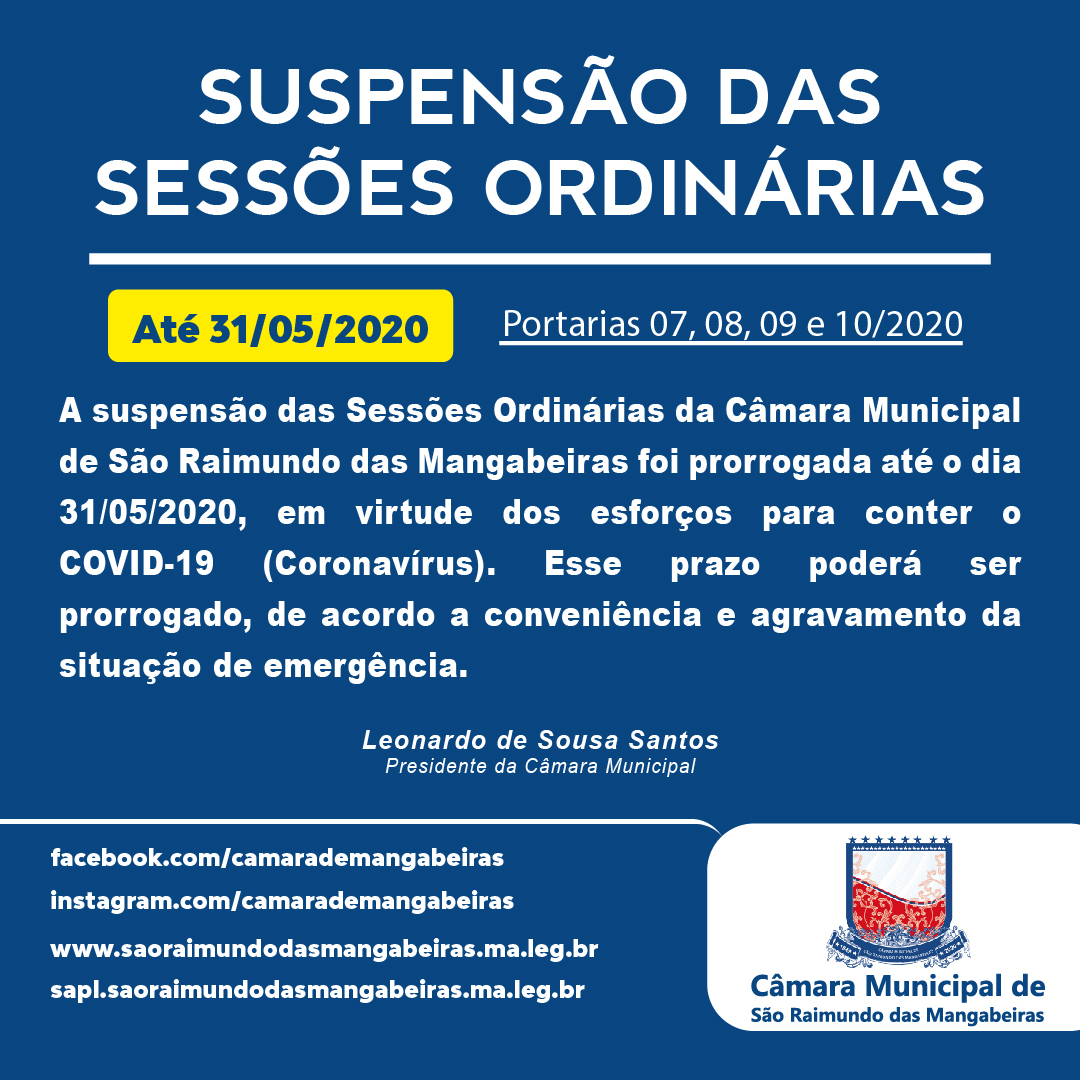 Atividades suspensas até 31/05/2020